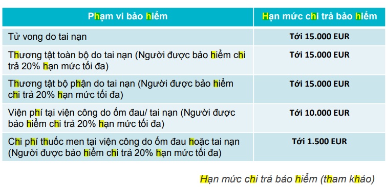 Phí bảo hiểm di trú (3 tháng ~ 70 tuổi trở lên): dao động từ 160 – 500 EUR/ năm.