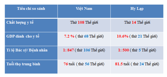 - Chất lượng đào tạo đội ngũ y bác sĩ và điều kiện y tế của hệ thống công và tư ở Hy Lạp đều tốt, nhưng dĩ nhiên là hệ thống tư có điều kiện chăm sóc tốt hơn vì số lượng bệnh nhân không đông như hệ thống công.